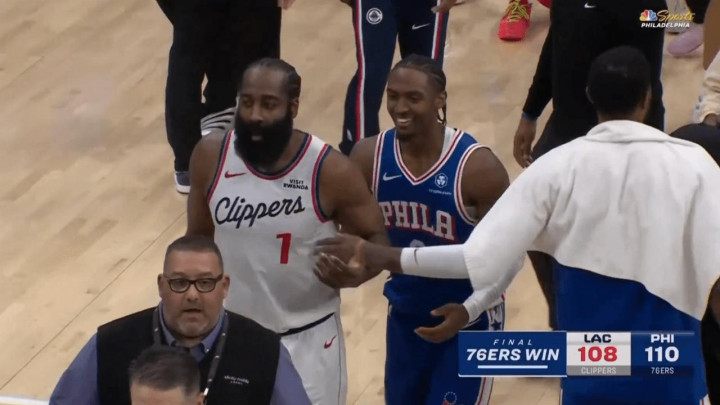 季初,哈登还在快船,11月18号快船做客费城,大帝因伤未出战,2月3号快船主场迎战76人,哈登去骑士前,交易保护没打。此时,由于哈登已经来到骑士,两人常规赛见面的最后一次机会,就剩下3月10号这一场骑士主场对76人,大帝因伤未能出战,但他还是来了。